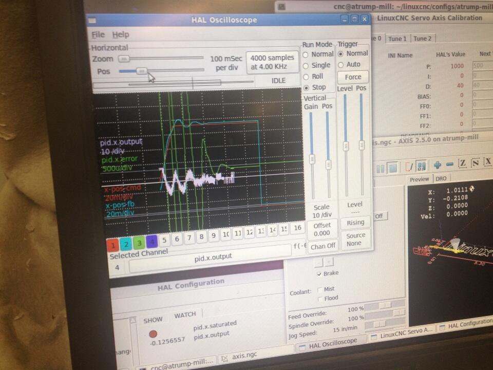 [23:47:09] <andypugh> On the Y axis the D term is negative. On the Z axis it is positive. Assuming that the Y had to be wrong, I made it positive, and the machine went into oscillation.